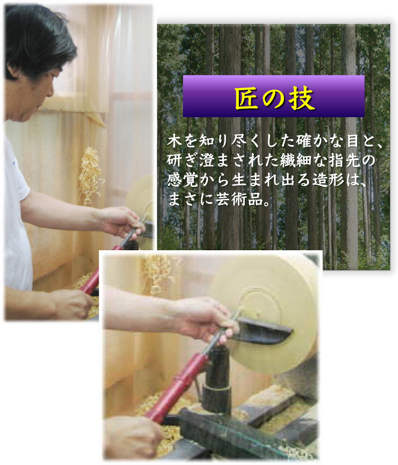細部までにこだわった芸術的な木の台座部分は、まさに職人の技術・情熱の結晶です。